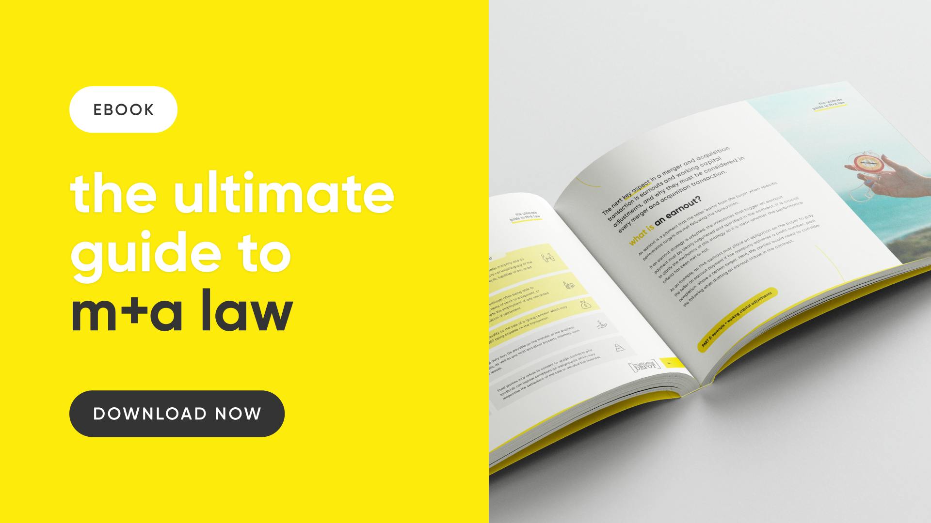 That’s why we’ve created the ultimate guide to M+A law: a free, practical ebook that walks you through the steps involved in completing a successful M+A deal, from start to finish.